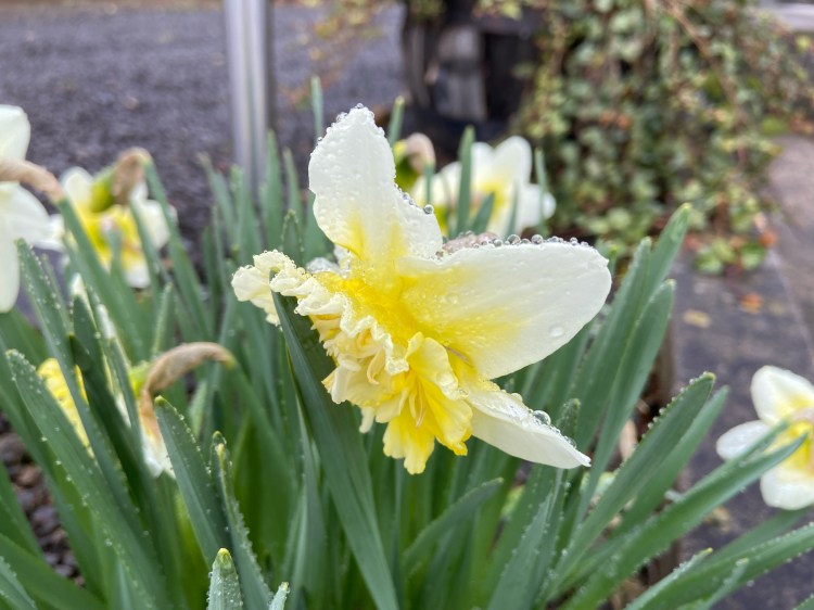 朝、雨にぬれたスイセンがキレイ。思わずカメラを向けてみた。