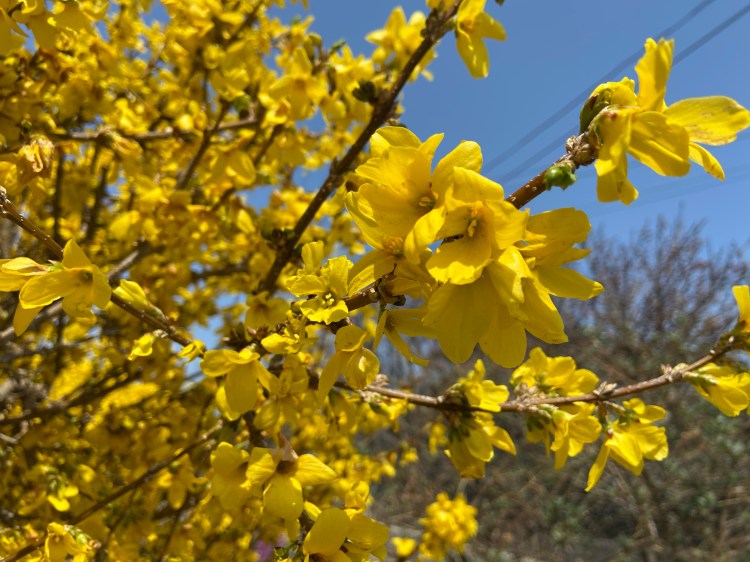 宇宙鳥の鳴き声や、目に鮮やかなレンギョウの黄色を見つけ小さなしあわせを感じるのであった。