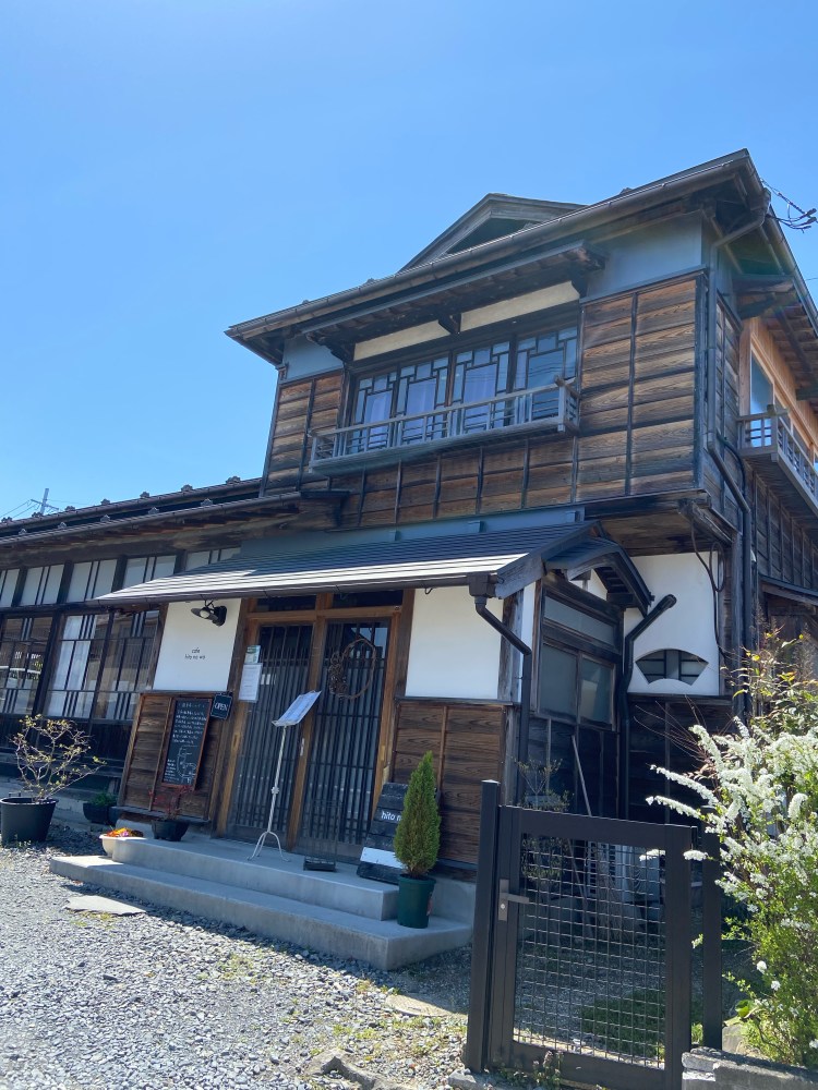 かねてより訪れてみたかった場所、古民家カフェ「 Cafe hito no wa 」に行ってみた。そこはかつて宿場町として栄え、今は古い街並みを生かし観光スポットとして今注目の市だ。中心部より車で1時間程度で行けるのもうれしい。ドライブ日和の空の下、ウキウキしながら出発。まだ桜も咲いていたり、遠くの山並みには残雪がくっきりと見えるくらい空気が澄んでいる。