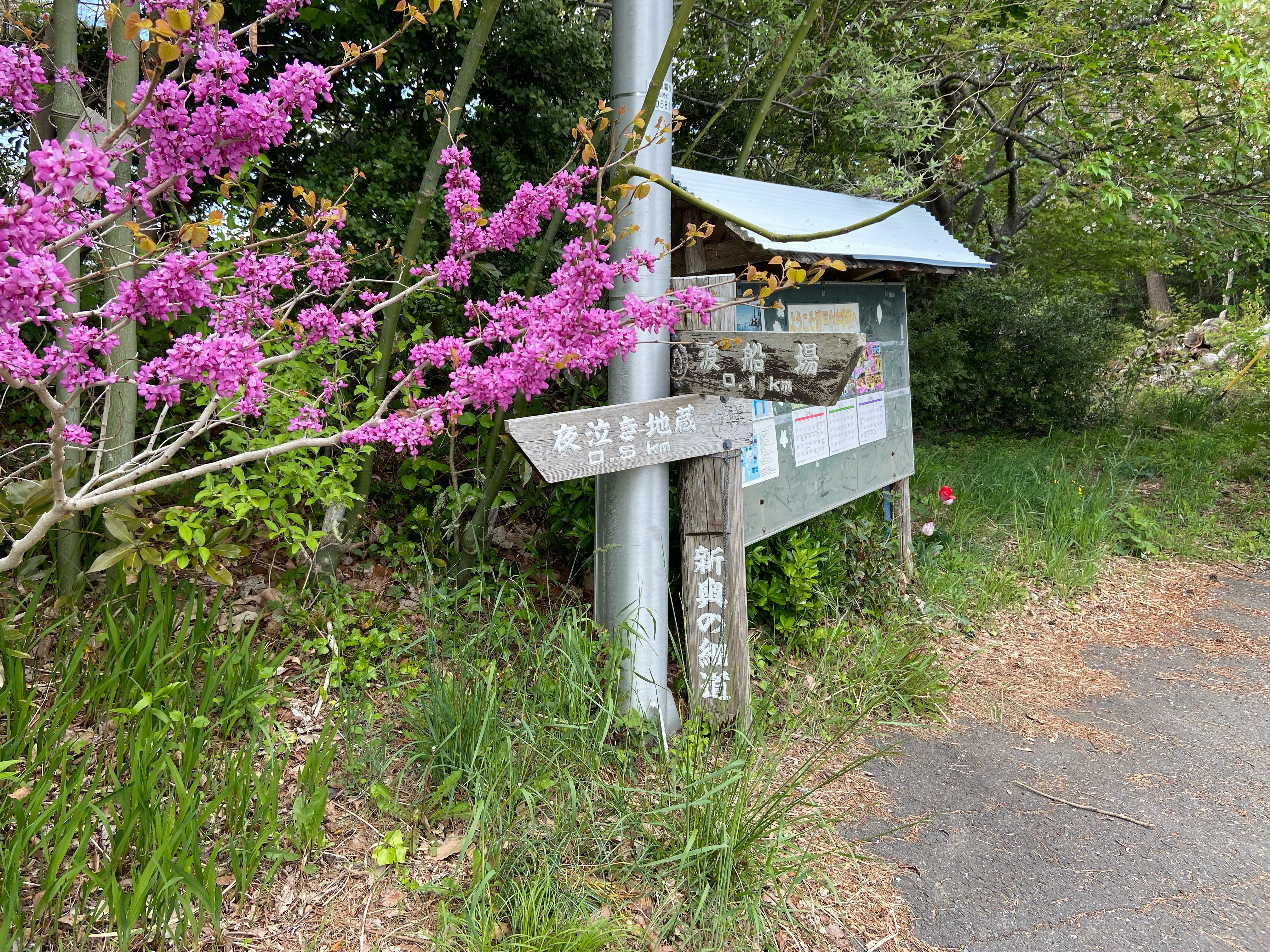 寒風沢島から渡船に乗り込み真向かいの野々島に上陸した。寒風沢島と野々島間は、キャッチボールが出来るのではと思えるほど目と鼻の先の距離なのだが渡船する。野々島を歩き始めると花の島なのかたくさんの桜や椿の木、色とりどりの花が見えてくる。桜や椿は季節的に咲き終わってしまったが、ゴールデンウイーク前なら楽しめそうだ。