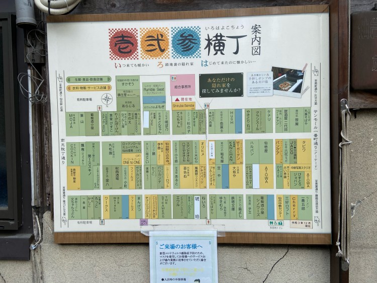 仙台市中心部にある「いろは横丁」はお店のマップが存在する。