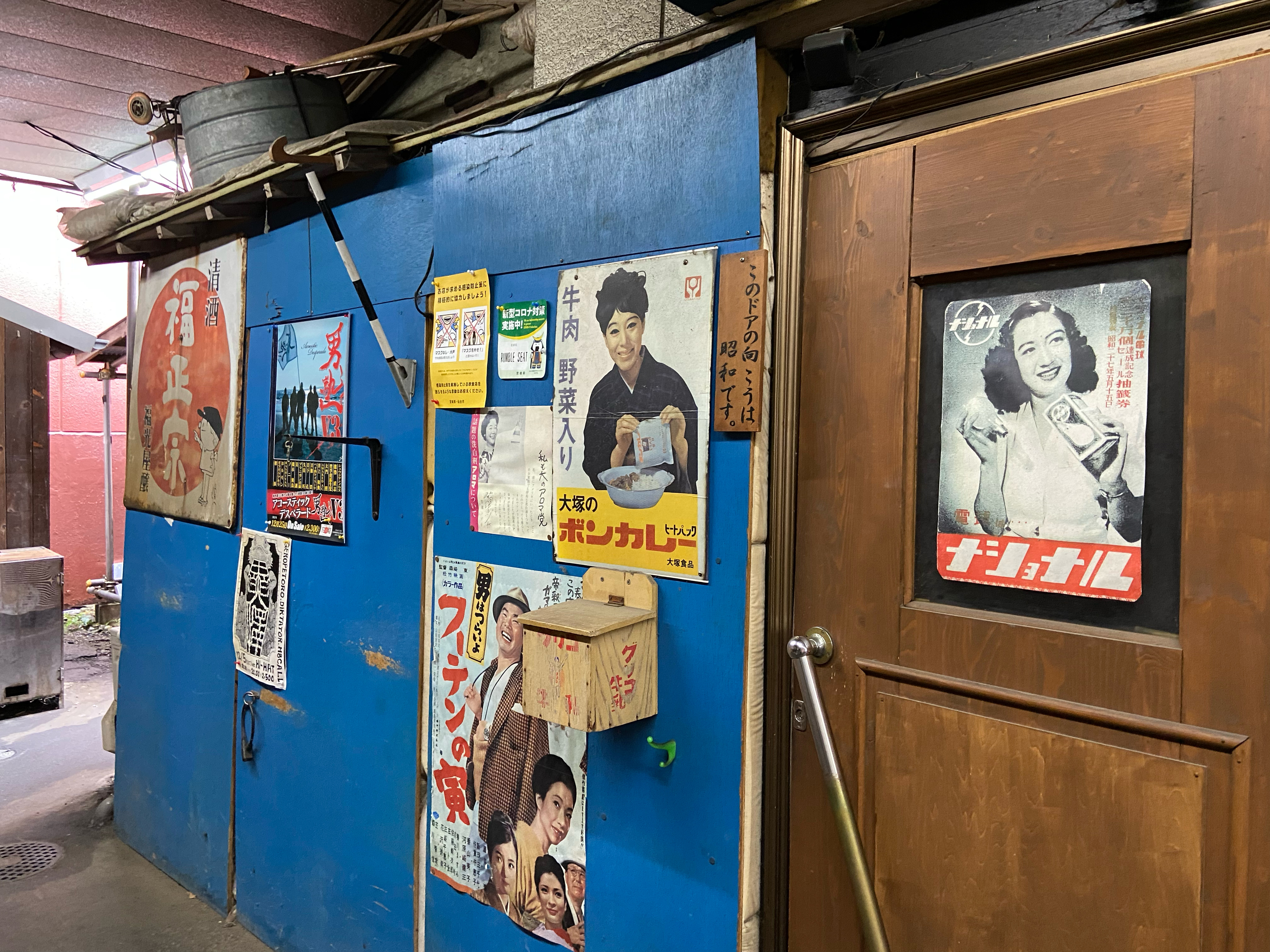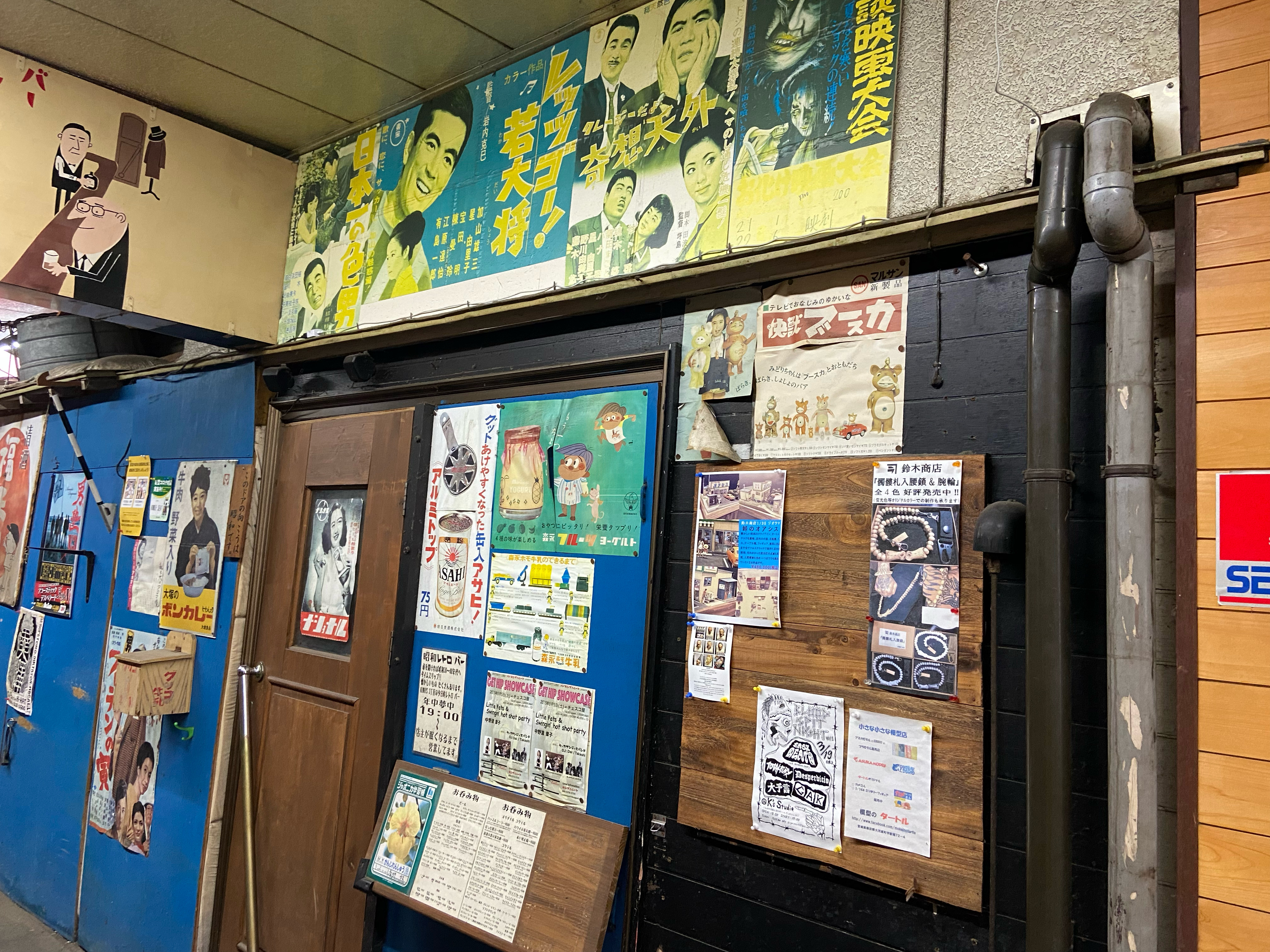 憩いの場には昔懐かしの井戸があるし、昭和のスターがにっこり笑っているポスターや戦隊ヒーローに出演していたマスコット的キャラクターのチラシなんかも貼ってある大衆酒場と表現できるようなお店があったり。とにかく昼間に来てお店は閉まって入るが佇まいが良い雰囲気なのだ。