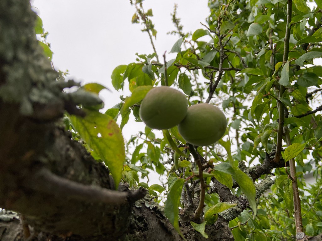 梅雨にまだ入っていないなんて信じられない天気。いつ雨が降ってもおかしくない曇天。そんな鬱々とした中、一筋の光「梅の実」の成長だ。まんまるになっていて、大きいではないか。そろそろ収獲間近な予感。