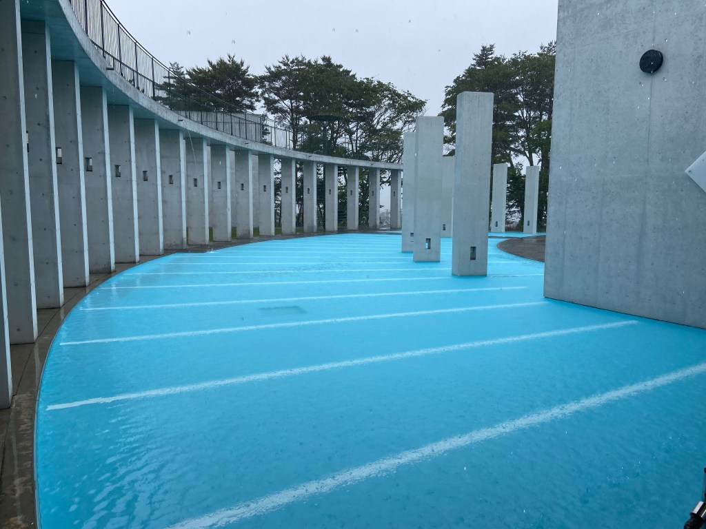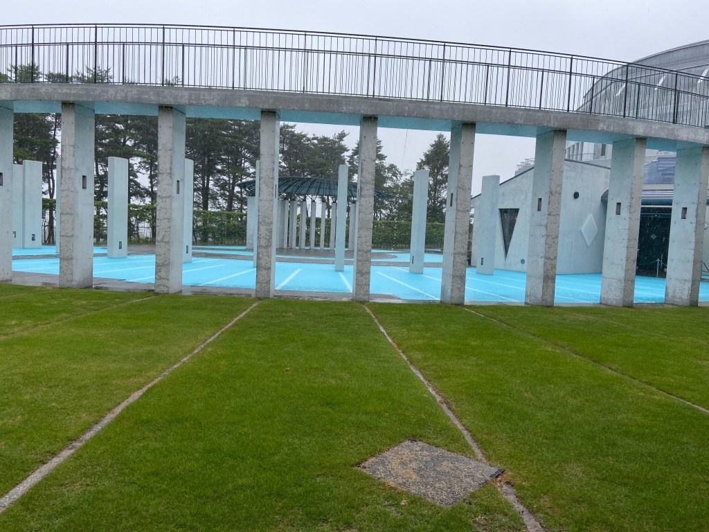 七ヶ浜国際村という場所にようやく着いた。雨でも素敵な場所だ。まるでローマ神殿のように柱が建っている。回廊も素敵だ。ホールもあるのでイベントもできるらしい。天気の良い時に来て庭を歩いてみたい場所である。