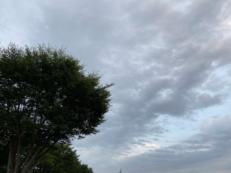 ふと会社帰りに見た空と街路樹、それにヒグラシが鳴いていた。かなりのボリュームで鳴いているところみると、ヒグラシも増加の一途のようだ。