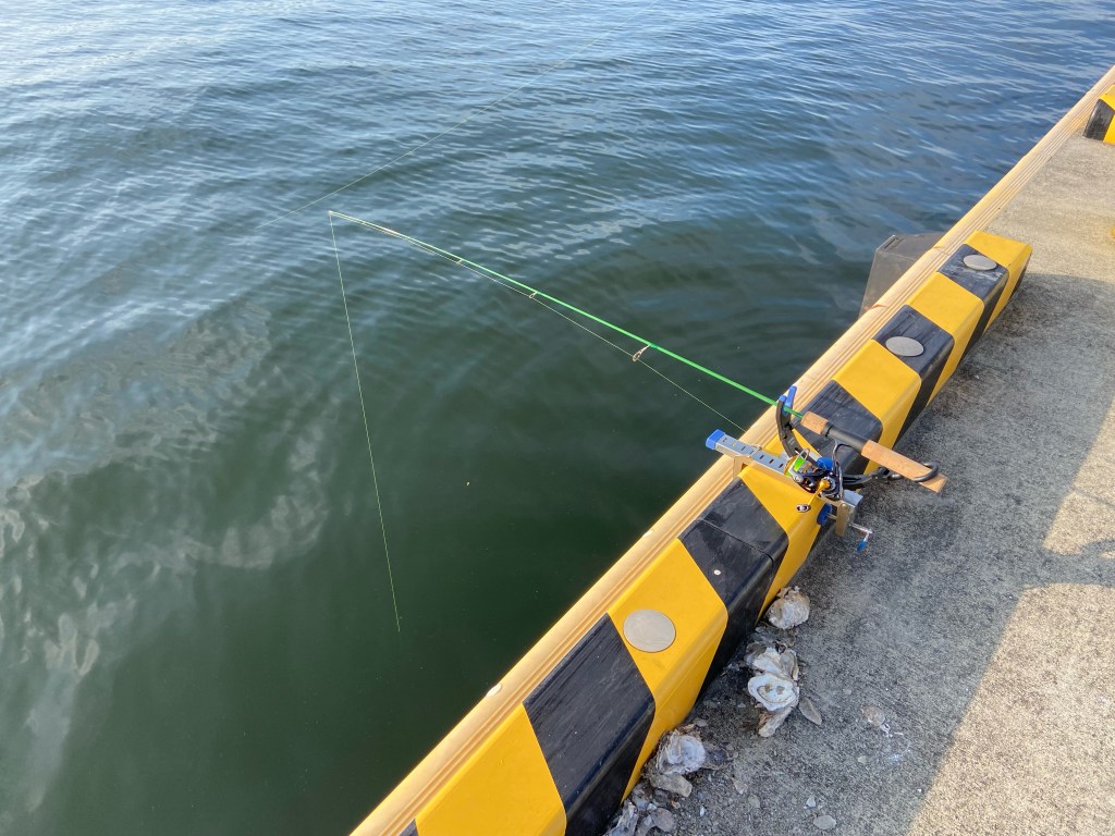 到着した時間が15時を回っていたが、釣り客が沢山いる。場所もない。仕方なく少し外れの埠頭で竿を出す事にした。遠くのお隣さんは、カニ狙いなのか仕掛けがカニ取り網の釣竿を数本出している。「むむむ、ここはイシモチはいないのか」と疑惑の念。