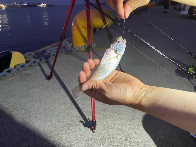キワを狙ってメバルをゲット。メバルを誘うのにイソメが大活躍だ。かなり食い付いてきたがなかなかのらない謎のお魚もいて、それは最後まで釣り上げることができなかったのが悔やまれる。が、多分フグだな。