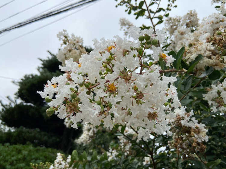近所でキレイな花を見つけた。猿も滑るとされるツルツルの幹を持つ「サルスベリ」の花だ。子どもの頃、「サルスベリ」の木を撫でてうっとりしていたのを思い出す。「サルスベリ」は漢字でかくと「百日紅」となるそうだ。近所の百日紅の花は白色で細かいフリルが美しい。他の場所ではピンク色。今の時期満開だ。