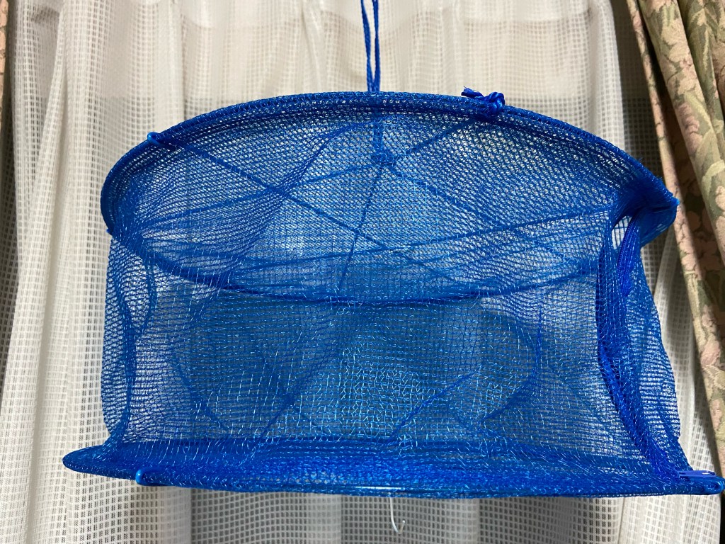 冷蔵庫に乾燥の為、丸一日入れていた。いよいよハゼの焼き干しのメインである干しネットでの工程だ。かなり水分は抜けて焼きミイラ化したハゼを、干しネットに並べ室内の風通しが良い場所でしばらく放置する。