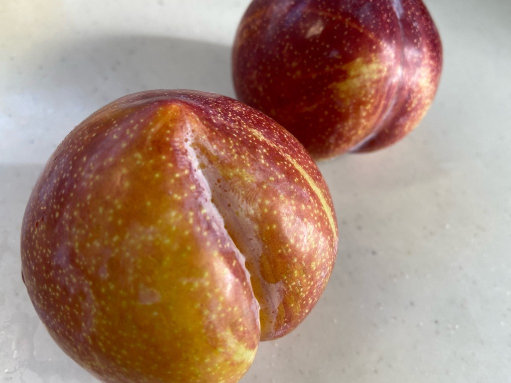 秋の味覚はたくさんある。その中でも果物の王様 「シャインマスカット」(自分で勝手に思い込んでいる)が頂点。実はプラムという果物も秋に出回る種類があるのだ。山形県産の「秋姫」という品種のプラムだ。初夏に出回る大石プラムは香りがよく小ぶりで甘酸っぱい品種はスーパーによく並ぶ。大石プラムがそろそろ終わりがけにソルダムという緑の表皮に果肉は赤という真夏のプラムが出始める。ソルダムは完熟すれば甘いが、硬め時期は甘酸っぱい。少し遅れて赤い表皮で白っぽい果肉の太陽プラムが店頭に並ぶ。この太陽プラムは身が水っぽくなく硬めで、しかも甘い。程なくプラムが並び終わりブドウやナシなどが店頭に並ぶ頃、この秋のプラム「秋姫」の登場だ。この品種は身が大きく握りこぶしくらいあり、果肉も厚みがあり甘い。しっかり目の果肉なので、食べ応えあり。スーパーで見つけたらすぐカゴに入れてしまうほど好きなプラム。