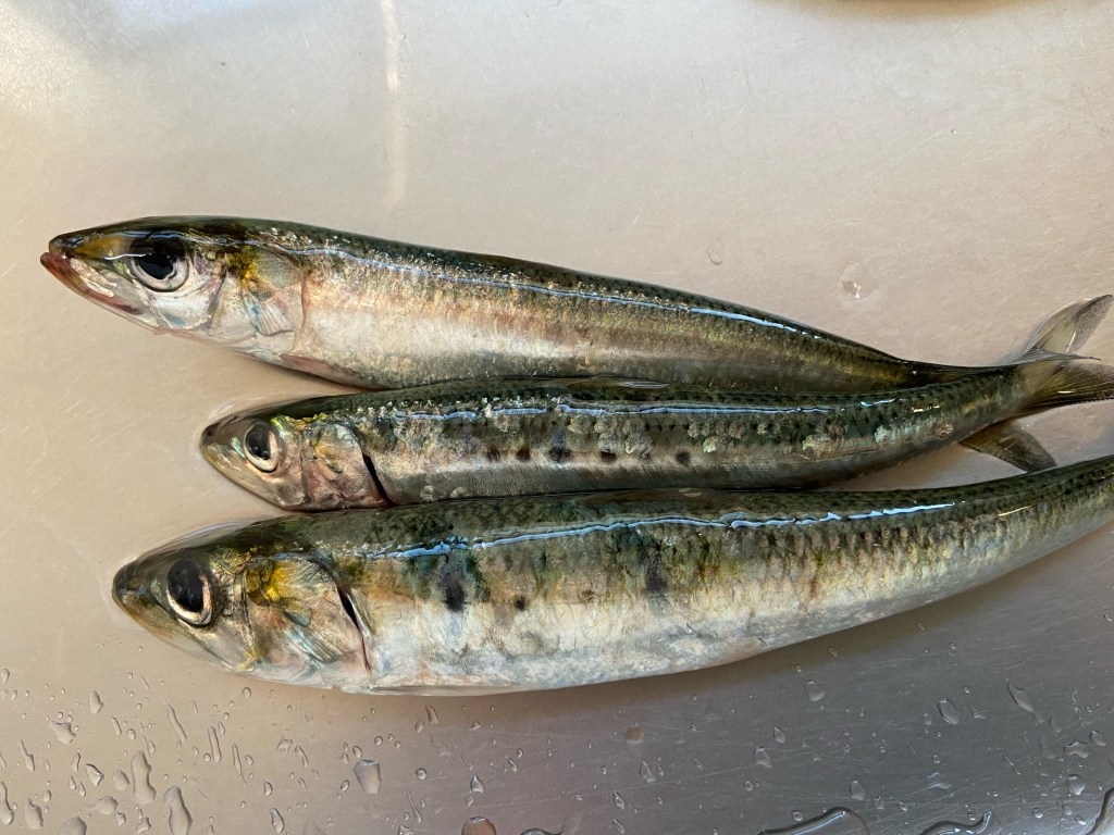 イワシの回遊に出くわした。サビキにかかりマイワシをゲット。