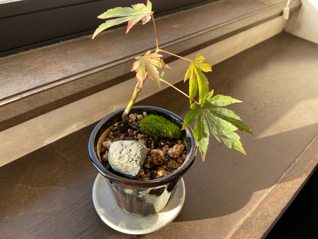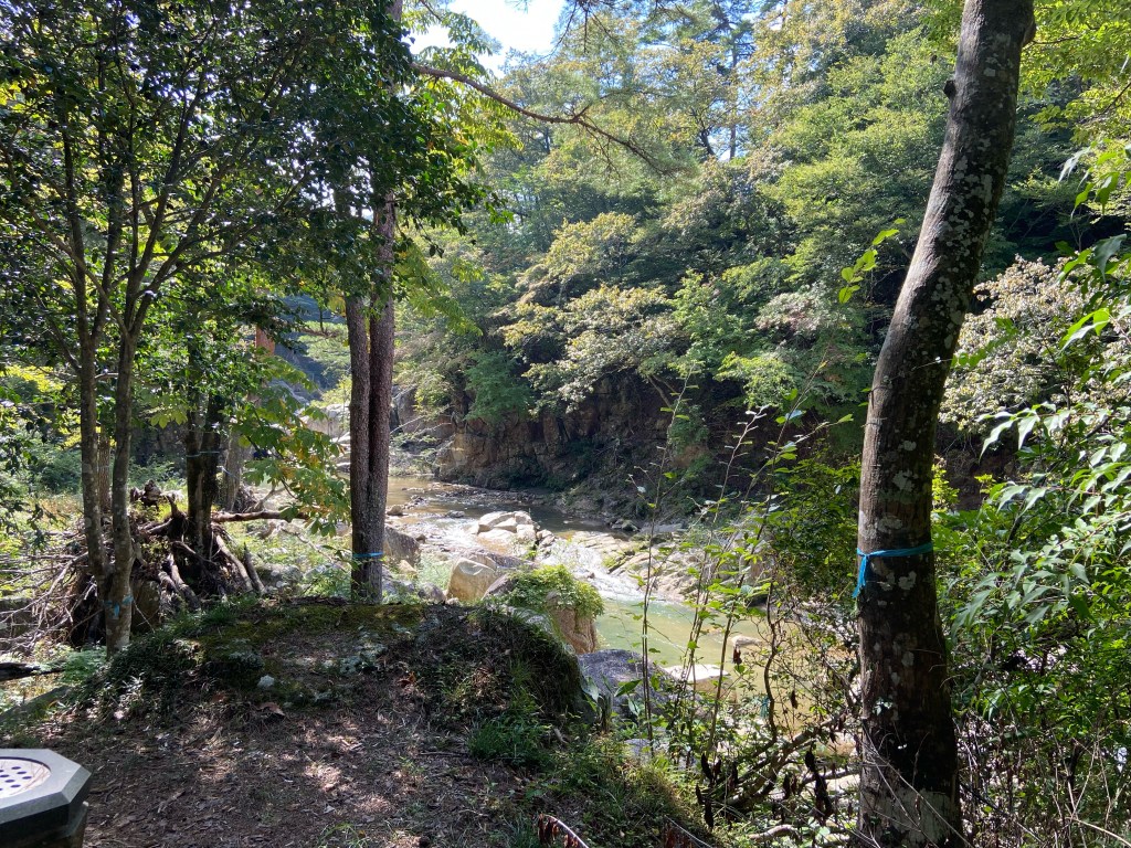 ランチの前に寄りたかった場所に着いた。ホッとした。あぶくま不動尊公園だ。近くにはあぶくま荘という宿泊施設があり、その奥にはキャンプ場もある。しかも近くには大きな石がゴロゴロしている川が流れており、まさにマイナスイオン。川遊びにはもってこいの場所だ。産直市場があったので早速店内に入る。ナスやカボチャ、さつまいも、里芋など季節の野菜はもちろん梅干しやニンニク味噌などの加工品も売っていた。そんな中目についたのはモミジのミニ盆栽。「かわいい❤️」と一目惚れで購入した。すでに苔や丁度いい石がついて、小さな日本庭園みたいだ。