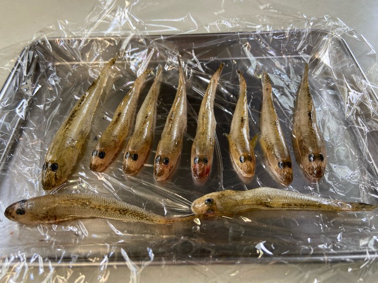 結局、再びダシとして使用するためにハゼの焼き干しを作ることにした。が、かなりサイズが小さいのでウロコやエラ、内臓をとるのにも大変だった。しかしハゼは愛嬌がありかわいい。キレイに洗ってパットに並べてみても、みんなかわいい。これから冷蔵庫で乾燥させなくてはならないので、いい加減見とれているのはやめようと思う。