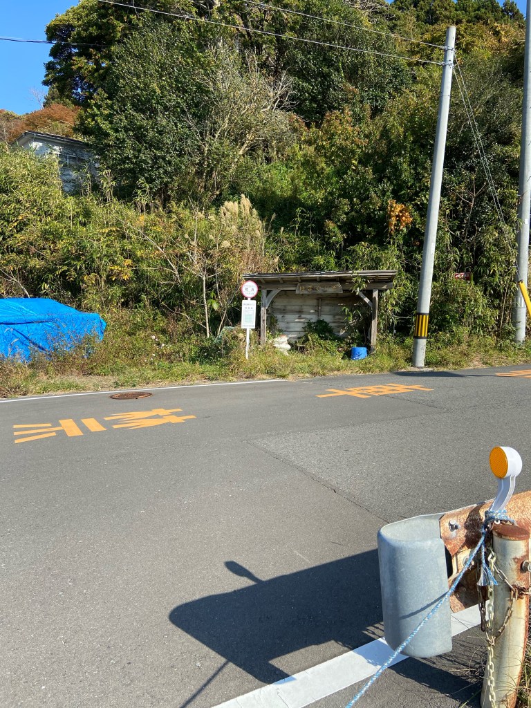 宮城の牡鹿半島にある蛤浜。小さな漁港だが、ここにはまぐり堂と言うカフェがある。予約制のこのカフェにまた訪れる機会が出来た。今年の5月頃にも一度訪れており、今回2度目の訪問。牡鹿半島の自然は5月の新緑から11月の初冬へ衣替え中で、この日の好天で紅葉が見事である。小さなバス停がひっそりと立っている。