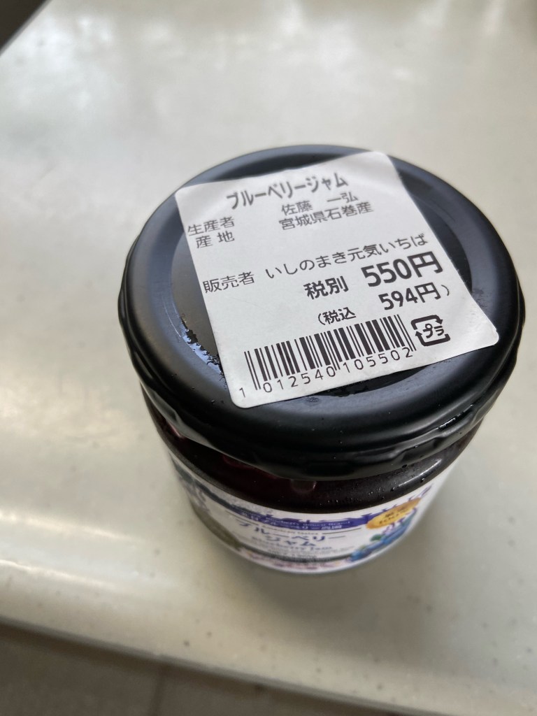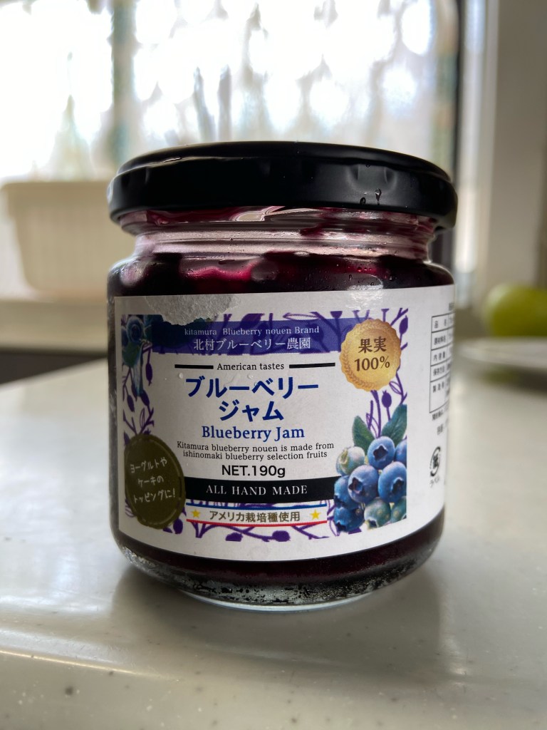 そんな中、石巻産ブルーベリーを使った商品に目がいった。ジャムやソースだ。しかも自然の甘さなどとポップ表示されているではないか。市販のジャムは果実は一体どこ❓このゼリーみたいな物体は本物のペクチン❓やたら甘すぎない❓というのが多いがこの石巻産ブルーベリーを使ったジャムのお味はいかがか。