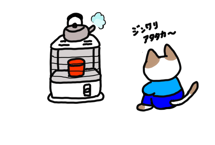 これではいかんと、反射式の石油ストーブを買ってみた。子どもの頃によくヤカンをのせ、ヒュンヒュンと湯気を上げるヤカンの姿は冬の風物詩に。時折、おかんが干し芋をストーブの上で焼いてくれたり、鍋をコトコト煮るには良い火加減のようでストーブの上によく大根の煮物が入った鍋があった。部屋中煮物の香りが充満していたのが記憶にある。