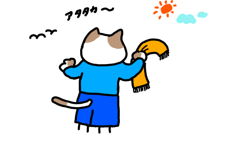 マフラー要らずで過ごせるなんて何ヶ月ぶりだろう。仕事中、気付くとうっすら汗ばんでいる。上着も一枚脱いでみる。暖か〜。早く毎日がホッとできる日が来ないかな。