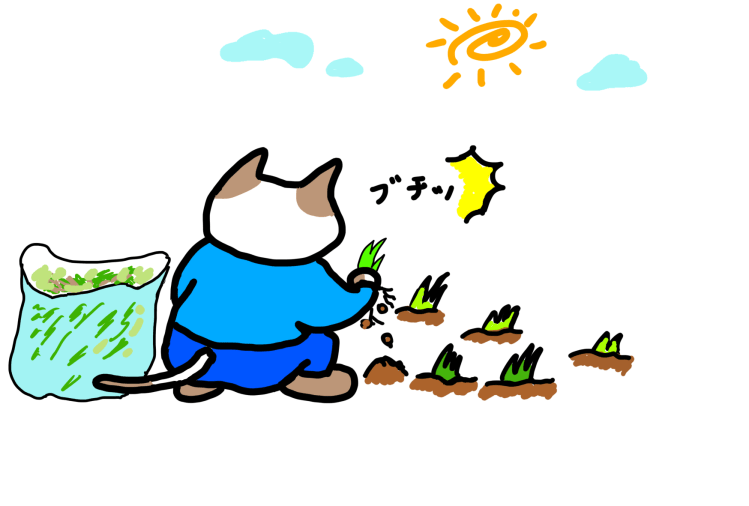 今回の草むしりはとにかく徹底して引っこ抜いて、除草剤を散布してみた。が、どの程度保つかな。