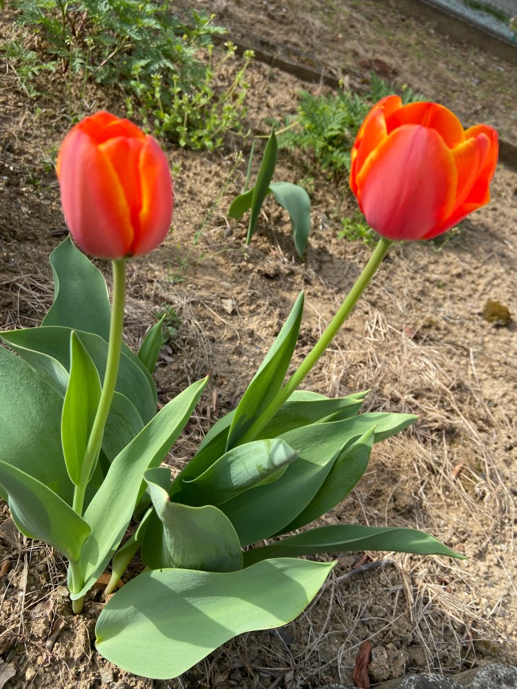 花が咲き終えると、花下をチョキンと切って次年度に備える。それでも翌年しっかり花が咲くので、いつもこの調子のまま何年も経っている。ブルーベリーにはしっかり肥料やら酸性土を施すのに、ほったらかしのチューリップは丈夫だわ。