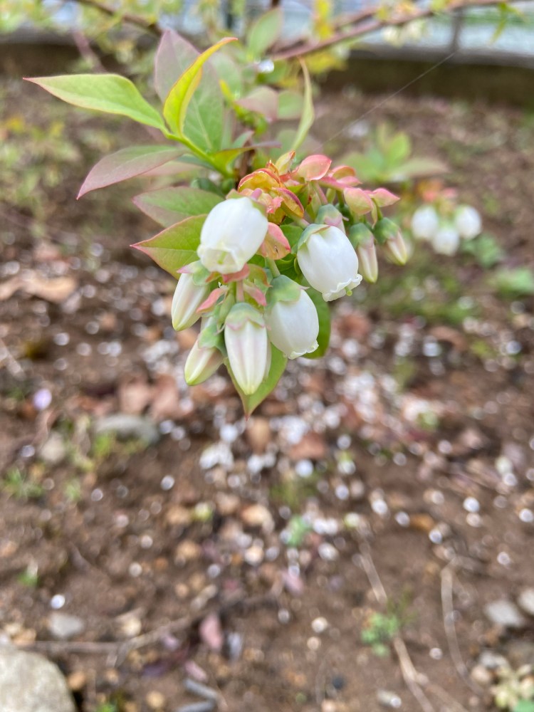 なんと❗️庭のブルーベリーの花が咲いていた。たくさん花芽を付けていたので、近々咲くであろうとほったらかしの状態だった。このところ忙しく、帰りも若干残業気味だったので、久々に朝、会社へ向かう為クルマに乗り込む前に庭を眺めて開花を発見した。