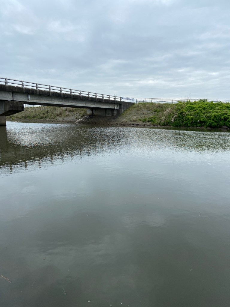テナガエビ調査は延べ竿に鶏肉を餌として付けて落としてみる。周辺を探ってみてもアタリはない。まだいないのね。ということで、テナガエビはまだ早いらしい。調査終了〜。