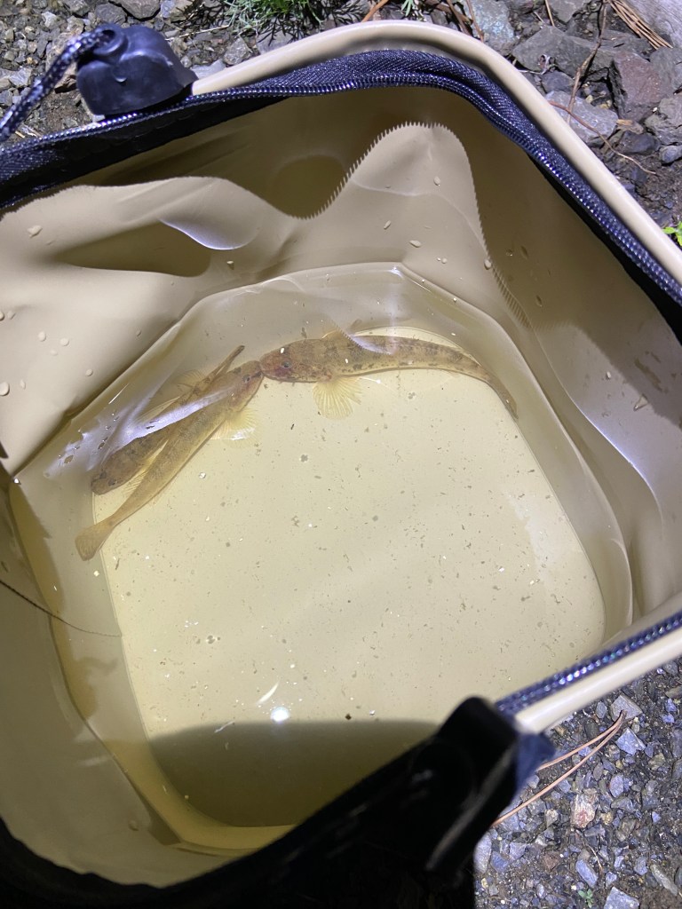 さてウナギ調査開始。ムシ餌として、アオイソメとミミズをつけて二本づつ置き竿にする。そろそろ夕マズメの頃、竿先が揺れた❗️回収してみるとなんとハゼが釣れたではないか。初夏の運河にハゼがいるのだ。この後ハゼが2尾も釣れ、ウナギ調査はウナギの釣果もなく終了。