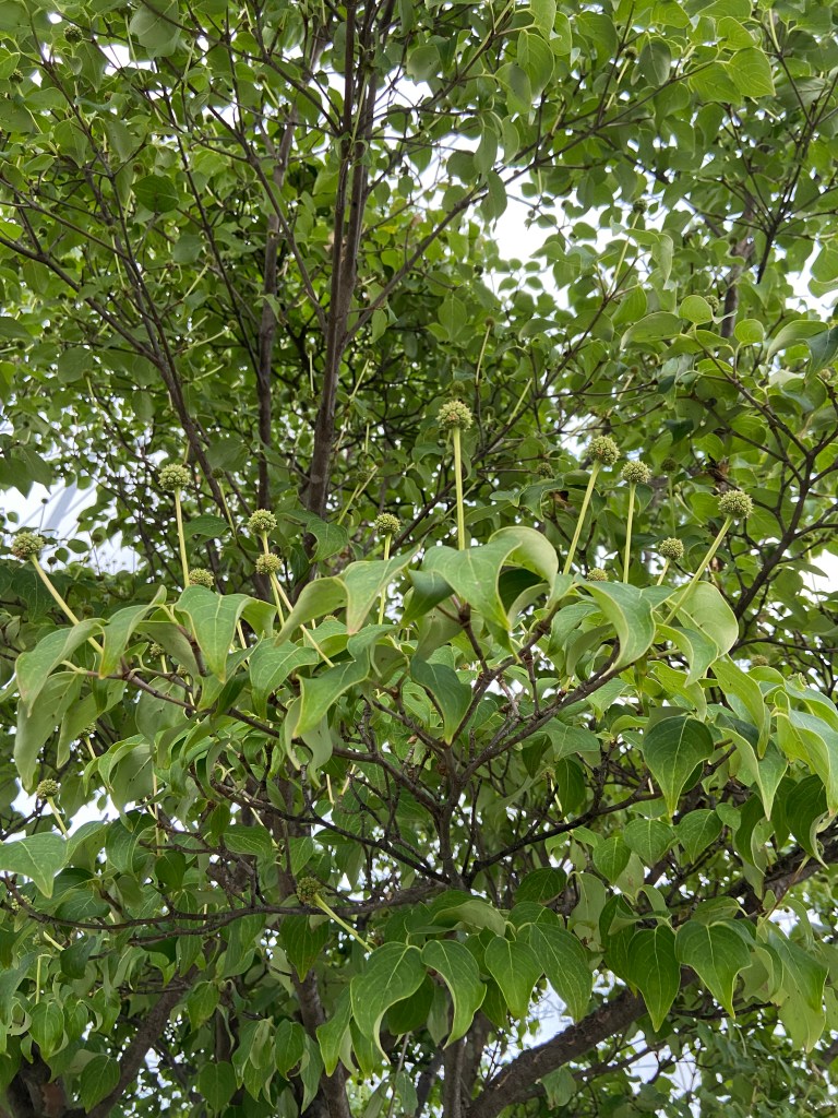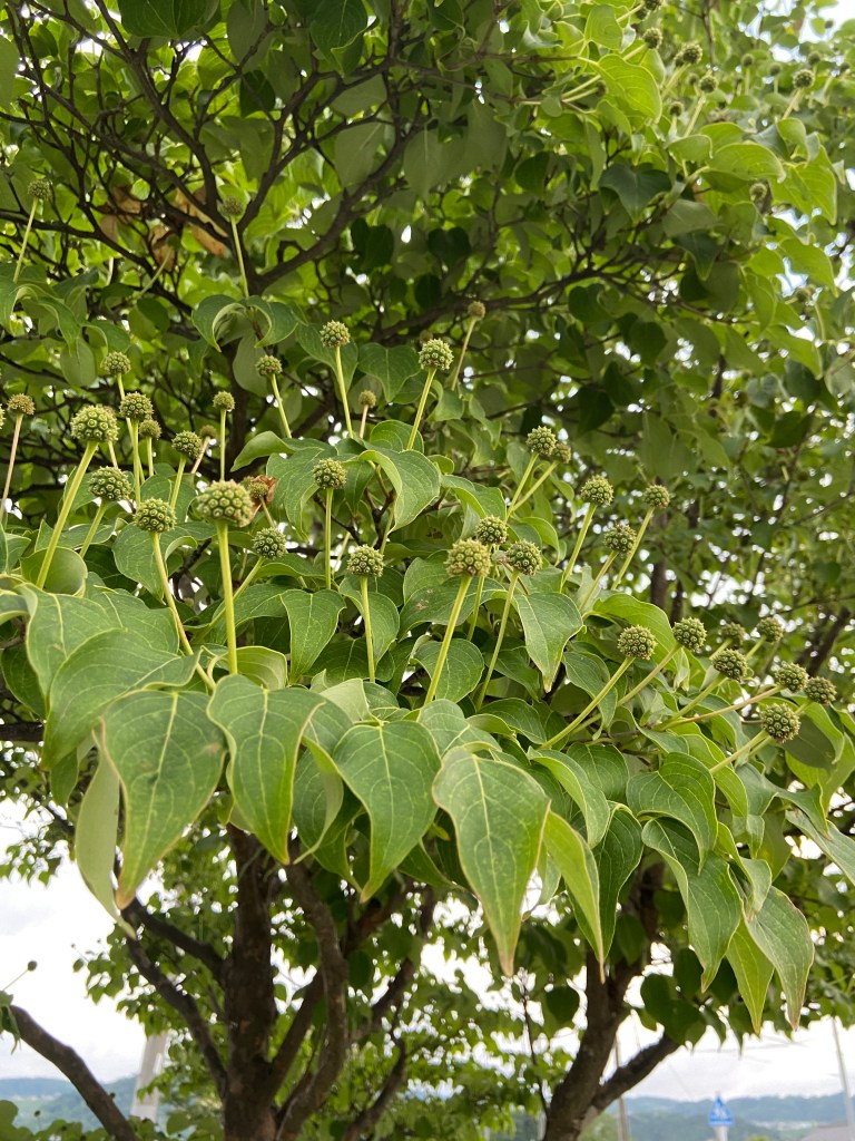 ウォーキングを日課として数週間が経つ。街路樹のヤマボウシの花が満開となってから経過を観察してきた。さて、あのキモい果実はどのように成長しただろうかとヤマボウシが街路樹として生えている通りまでウォーキングをした。