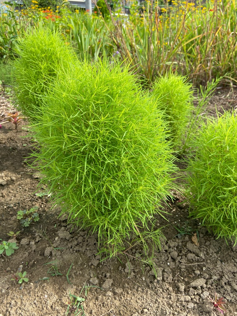 手入れをしているよそ様の庭によく見る植物がある。黄緑色のフサフサでまん丸なほうき草だ。団体で植えているほうき草はかわいい。このほうき草は以前は「ほうき草」の名前で販売してたが、最近は「コキア」という横文字の名前で表示されている。