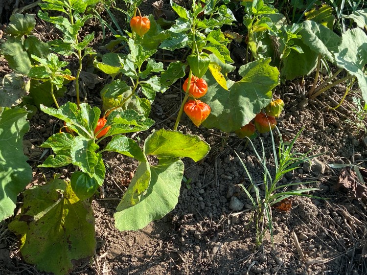 ホオズキがなっていた。夏の風物詩であるホオズキは「ホウズキ」ではなく「ホオズキ」と書くそうだ。ナス科の植物。オレンジ色の袋を開けるとこれまたオレンジ色のまん丸な実が入ってる。子供の頃、よく八百屋へおつかいに行くとで枝付きの枝豆と一緒に売られていて「欲しいな〜。でも約束の枝豆を買って帰らなくては怒られるし」と渋々枝豆を買って帰宅。ホオズキが売られていたよ❗️と訴えても、大人たちは「あらそう、そんな季節ね」などとはぐらかされてしまう。その頃は珍しさもあったので欲しいな〜とねだってみるが、季節の花々と同じ観賞用なんだよね。