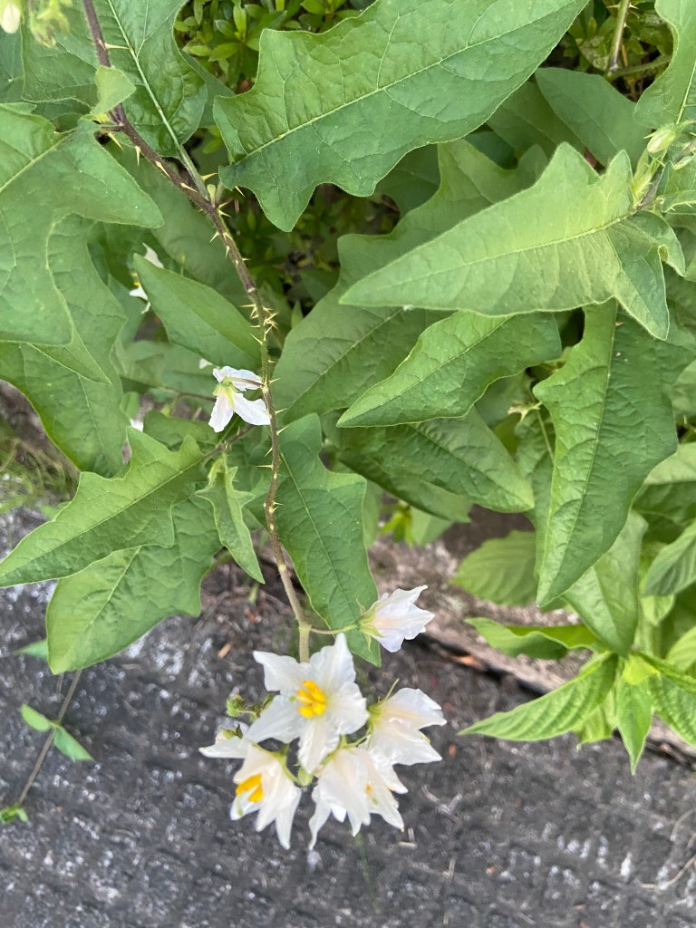 原産はアメリカ、外来種の帰化植物。明治あたりに日本で発見されたらしい。プチトマトくらいの黄色い果実がなるようだが、毒があるようで食用できないって。子供が間違って食べないようにと注意喚起してある。ワルナスビ、なるほど❗️それは悪い。