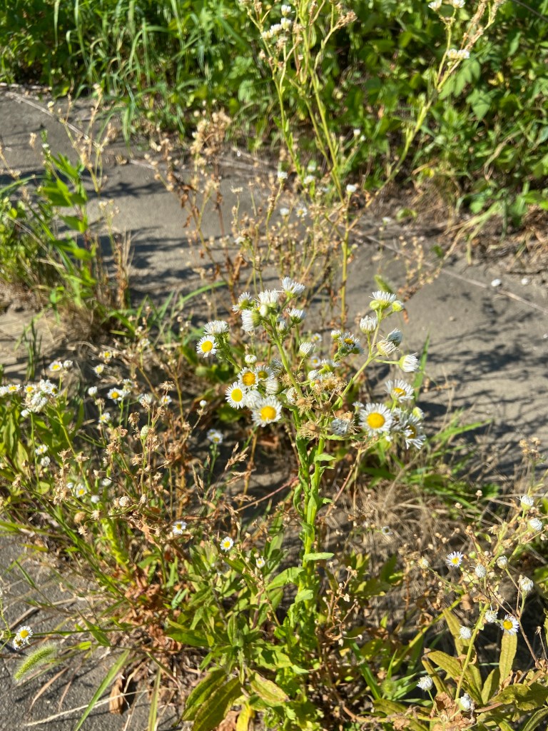 野草の中でどこにでも咲いている、「あーこれね」と誰からも言われるほどの花。ウォーキングではお馴染みになっていて、キク科なんだろうがイマイチ存在が薄い小さな花。初夏から見られるアスファルトの隙間からニョキっと元気で強い茎をもつ花。