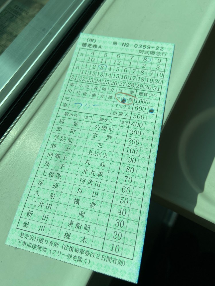 と、不安いっぱいで阿武隈急行槻木駅に到着。心配を早めに解決したかったので、速攻、駅員さんに聞いてみた。「中で買えるから。買えなかったら着いたところで買ってね」とすごくアバウト。すぐに電車に乗り込んだ。運転手さんから他の乗客たちがフリー切符を購入をしているのを見てホッとする。早速、600円で購入完了。
