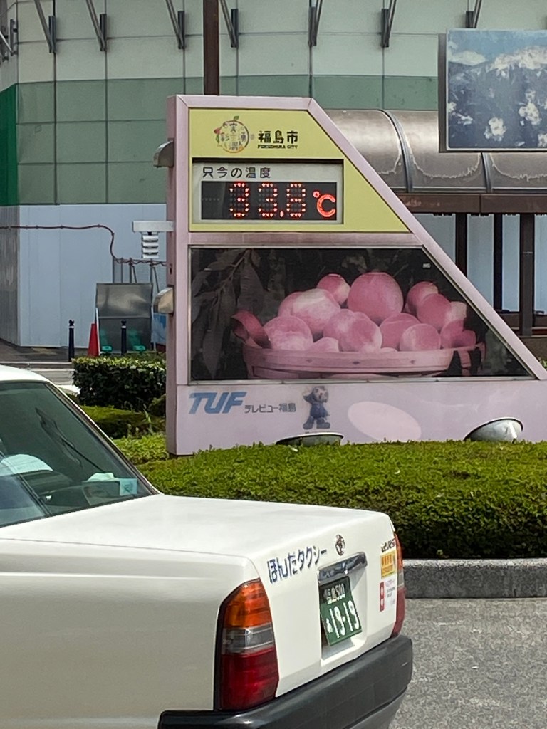 梁川駅で電車を乗り換え、いよいよ終点「福島駅」まであと数駅。相変わらずの各駅停車なのに、福島県内に入っても乗客は乗ってこないし降りる人もいない。休日の昼間という時間帯だからか。それとも猛暑が続いて出かけるのが億劫になっているのか。