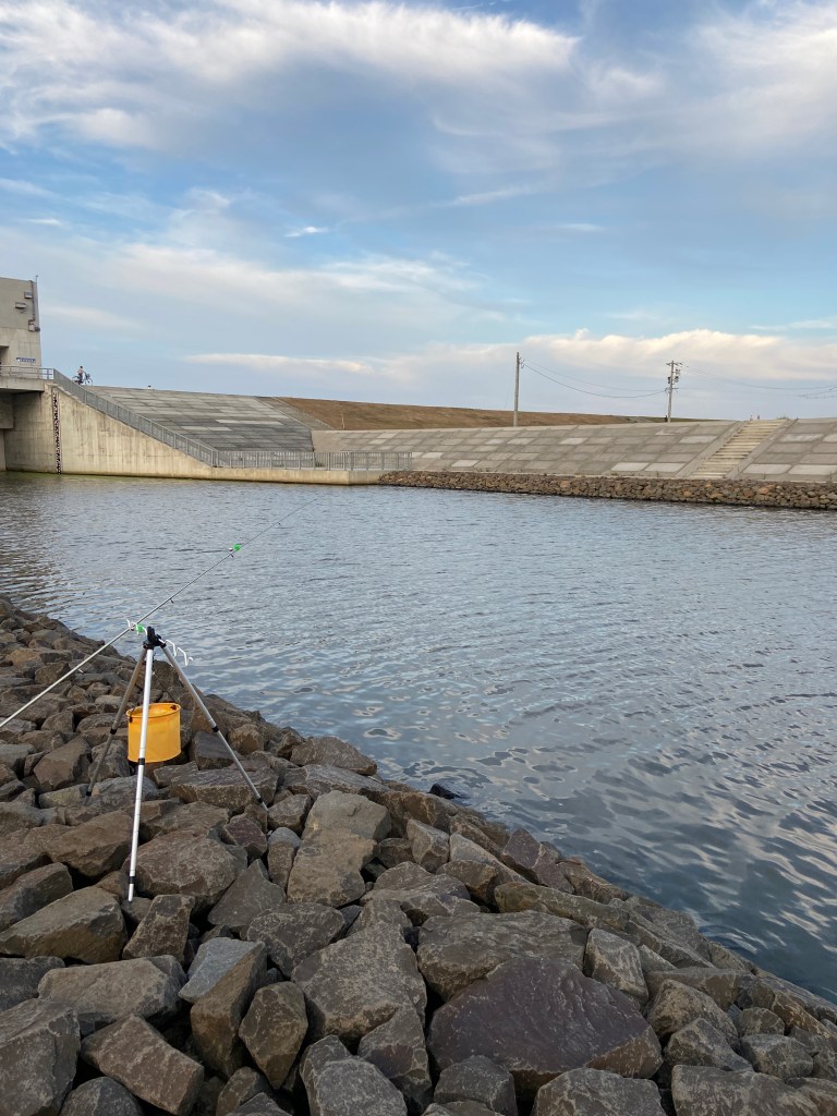 大きな川の河口付近にある運河に到着。さすが大雨だっただけある。濁っている。しかも運河から大きな川へ通じる水門が閉じられていたのだ。これでは釣果は望めないな。駄菓子菓子(笑)せっかく来たからには調査と称して釣りをしなければならん。ムシ餌でぶっ込みだ。空はすっかり高く、秋を感じさせる雲。