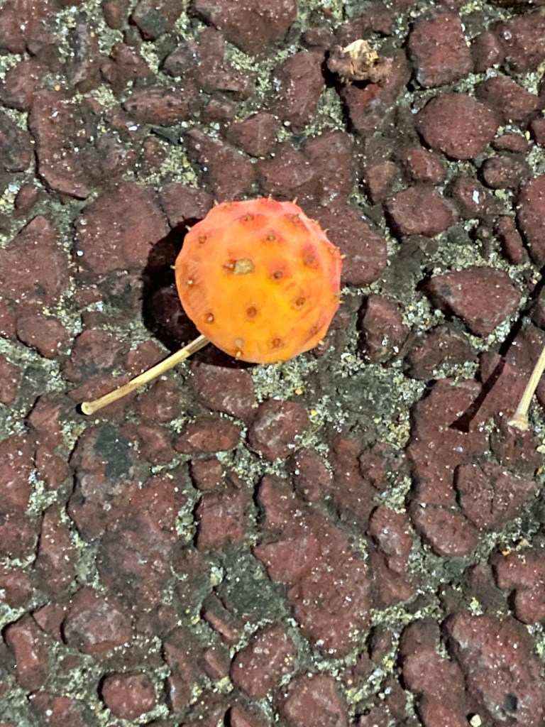 「食べてみたい❗️」と思ったが、植物図鑑には「街路樹は薬剤散布されている可能性があるのでむやみに口に入れないで下さい」「落ちている果実は衛生的によろしくありません」となんだか否定的。あきらめた。