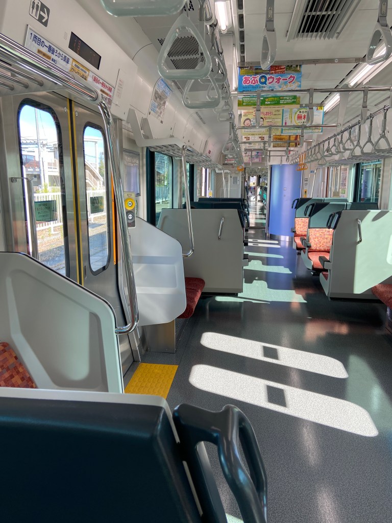 出発まで時間があるが、早速電車に乗り込んだ。「あれ❓」誰も乗ってこない。折角フリー切符の日なのに勿体無いな。と嘆きながら車内を撮影。程なく乗客が続々乗り込んできた。この阿武隈急行は赤字路線で存続が危ぶまれている。是非とも乗客をどんどん増やしてずーっと阿武隈急行を続けてほしい。
