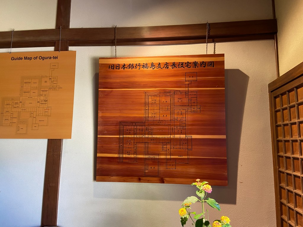 トコトコとお年寄りの歩みに付き合い、到着したのは「御倉邸」だ。旧日本銀行福島支店長宅だったところだ。まちづくり協議会が管理していて、こんなに素敵な庭と広いお屋敷を見せてくれるのに無料である。阿武隈川を利用し舟運として福島の経済発展に重要な場所だったらしい。縁側から阿武隈川の流れが見え、ここだけ世界が違うようだ。