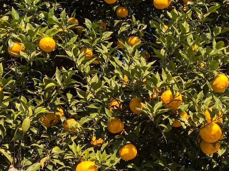 農家さんの庭先にユズの木があり、たわわにユズが実っている。今年は豊作なのかものすごい数のユズだ。しかもそこの農家さんはもう一本ユズの木があるが、その木も豊作なのだ。