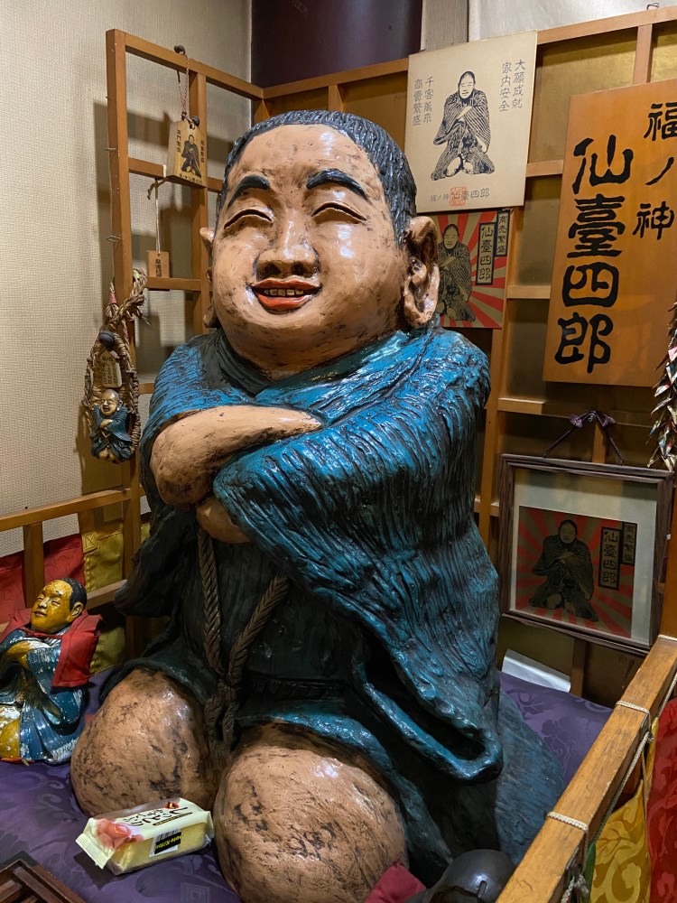 そんな「仙台四郎」を祀っている商店街の中にある三滝不動尊にお邪魔した。インパクト大の「仙台四郎」像をカメラに収め、金運アップを願うのだった。