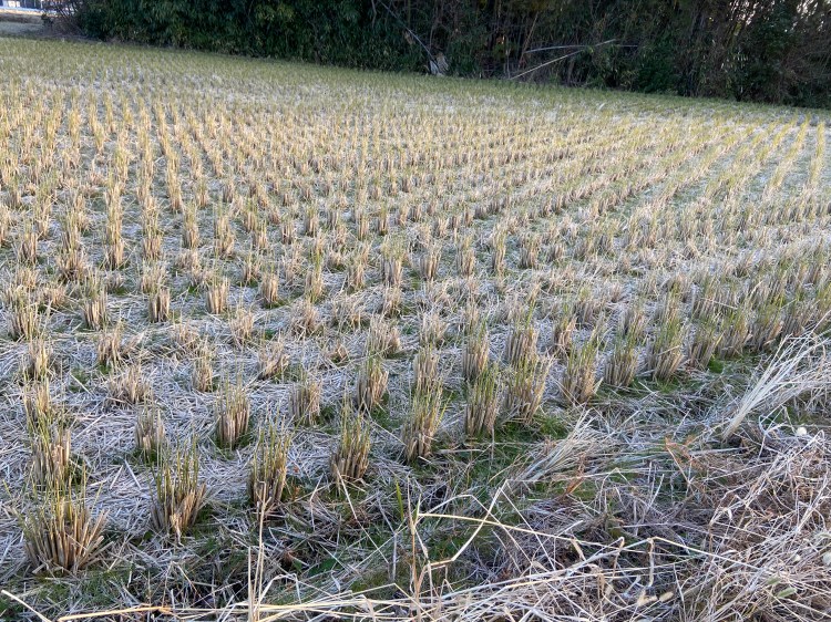 そんな冷え込んだ朝のウォーキングで、自分の肌のようにカッサカサの田んぼを見た。この時期特有の茶色い景色。冬になったばかりなのに、もう春が待ちどうしい。