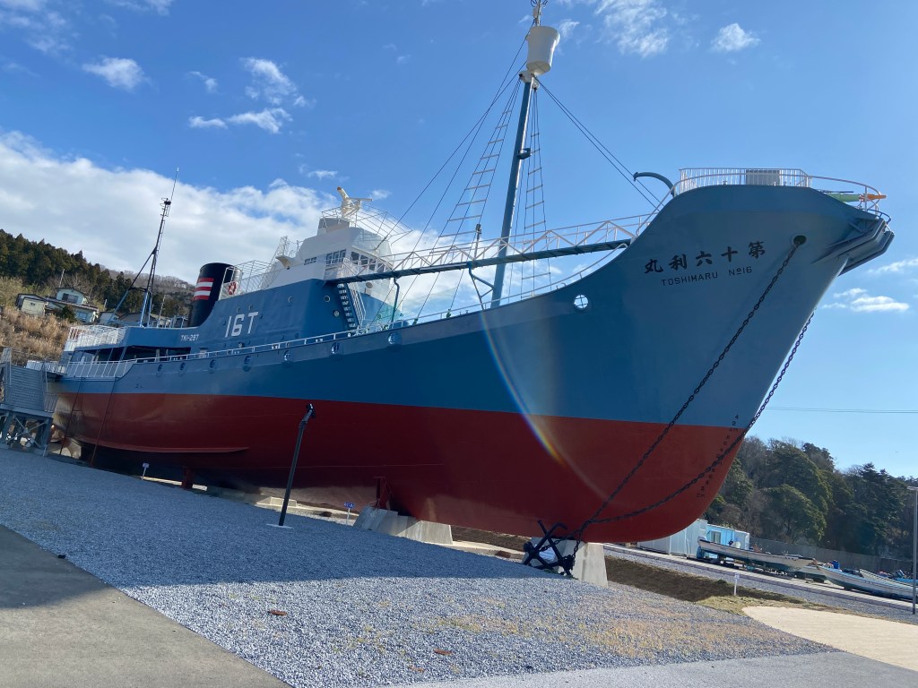 釣り納めということで、遠征漁港巡りをしてきた。宮城県石巻市の牡鹿半島先端にある捕鯨の町「鮎川港」へ、久しぶりの訪問だ。この「鮎川港」には昔捕鯨船として活躍したデカい船が展示してあり「オワッ」と圧巻。ホエールタウンおしかがあり、地元の美味しい魚やクジラを使った料理を提供してくれる飲食店も入っているのだ。年末でも多くの観光客で賑わっていた。