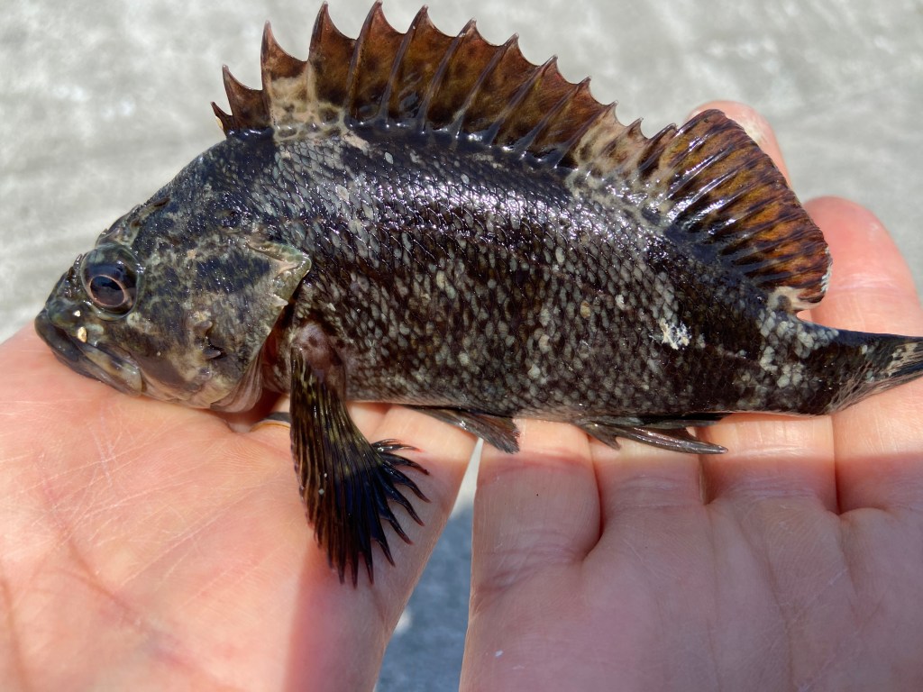 遠征で訪れた漁港では、やはり三陸らしくロックフィッシュを釣り上げた。岸壁直下にはブロックが敷き詰められて、穴にムシ餌付きのブラーを落としたら速攻でお持ち帰りクロソイが食いついた。